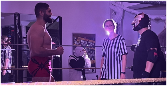 Während der Sarg in die Halle getragen und neben dem Ring platziert wurde, merkte Tim Erny noch folgendes an: Der Sarg wurde erst ausgegraben. Da war erst jemand drin, es kommt bald wieder einer rein und der Sarg muss auch wieder zurückgegeben werden. Sollten Würmer aus dem Sarg kommen, solle man die einfach liegen lassen. Bereits bei seinem Einmarsch sorgte Don Crowley für einen Gänsehautmoment. Er kam im Stil von Bray Wyatt in der Anfangszeit der Wyatt Family zum Ring. Boris Pain verließ währenddessen fluchtartig den Ring und schien Angst zu haben. Bei diesem Match gab es noch eine Planänderung. Nicht Annette sollte dieses Match als Ringrichter leiten, sondern Hary. Boris Pain war davon sichtlich nicht begeistert, weil er Hary für parteiisch hält und gerade er fürchtet, dass das Match nicht fair ablaufen würde. In diesem Match trafen zwei Powerhouses aufeinander. Es begann mit einem Lockup, aber Boris Pain ging nach einem Schubser von Don Crowley zu Boden. Als Boris Pain wieder auf seinen Beinen stand, hagelte es Chops und Schläge auf Don Crowley. Doch Don Crowley zeigte sich davon wenig beeindruckt. Auch ein Shoulderblock von Boris Pain ging nicht durch. Die beiden schickten sich mit Whipins in die Seile. Boris Pain wurde von einem Crossbody durch Don Crowley geplättet. Boris Pain landete in einer Ringecke, wo Don Crowley mit einem Big Splash fast zerquetschte. Don Crowley dominierte weiter, bis Boris Pain erstmal den Ring verließ und von Don Crowley verfolgt wurde. Die beiden prügelten sich durch das Publikum, Boris Pain landete auf dem noch geschlossenen Sarg. Boris Pain kam wieder auf die Beine und wehrte sich gegen die Attacken von Don Crowley. Boris Pain öffnete den Sarg, doch Don Crowley konnte sich wehren, bevor er im Sarg landete. Boris Pain schlug wie von Sinnen auf den Rücken von Don Crowley ein. Es folgten gegenseitige Chops, die ordentlich krachten. Don Crowley wirft Boris Pain aus dem Ring, der aber auf dem Apron landete. Ein Schubser von Don Crowley und Boris Pain landete im Sarg. Don Crowley wollte den Deckel auf den Sarg packen, um das Match für sich zu entscheiden, aber Boris Pain steht auf und kann seine Niederlage abwenden. Das Bild wendete sich und Don Crowley lag im Sarg.