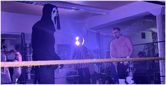 Das Match begann klassisch mit einem Lockup. Sexy Pool zeigte eine Head Scissor, doch sein Suplex wurde von Ardit Alija geblockt. Ardit Alija brachte seinerseits einen Suplex durch, gefolgt von einem Sidewalk Slam. Das anschließende Cover ging nur bis 2. Ardit Alija setzte einen Aufgabegriff an, aus dem sich Sexy Pool herauskämpfen konnte und wieder ins Match zurück fand. Sexy Pool zeigte einen Tornado DDT gegen Ardit Alija. Ardit Alija kämpfte sich zurück auf die Beine, verpasste Sexy Pool einen Powerslam und wurde dann eingerollt. Sexy Pool konnte Ardit Alija bis 3 auf den Schultern halten und das Match für sich entscheiden. Ardit Alija und Sexy Pool zeigten gegenseitigen Respekt. Während dem gemeinsamen Posieren kam Ghostface in den Ring und attackierte beide. Ardit Alija konnte Ghostface vertreiben und aus der Halle jagen. Sexy Pool entledigte sich zum Teil seines Kostüms. darunter steckte Alex Sixxx.