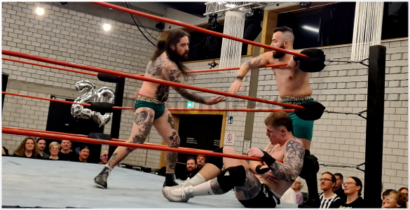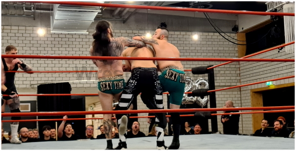 Sehen wir von lautstarken und betrunkenen Fans ab, wäre das mit Sicherheit eine perfekte Show geworden. „Sexy Time“ waren ab Sekunde 1 als technisch versierte Faces total over und als Heels glänzten KLAR Boris Pain, Dave Blane, Don Sheen (#Mindestlohn), Luce Corde sowie Ozzy! Die Story um Ozzy und Nobody geht weiter und wir dürfen gespannt sein, wie letzterer seine Liga zurückerobern kann. Vielleicht schon in Erding?!