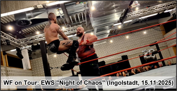 Wir waren am 15. November 2025 in Ingolstadt bei dem EWS „Night of Chaos“ Event für Euch vor Ort und haben einige Eindrücke mitgebracht! 20 Jahre gibt es die EWS nun schon und dies sollte gefeiert werden. Zudem stand eine Vertragsunterzeichnung zwischen Nobody und Ozzy an, letzterer hatte sich die Promotion durch Betrug sichern können. An diesem Tag sollte sich Nonody endlich seine Liga wieder holen. Aber wie der Name schon sagt, es war ein chaotischer Abend. Die Halle war gut gefüllt, die Stimmung bereits zu Beginn mit dem Entrance von „Sexy Time“ auf dem Höhepunkt. Absolut tolle Faces!